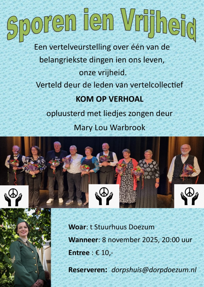 Vertelcollectief âKom op Verhoalâ waarkt aan n nije versie van de vertelveurstelling âSporen ien Vrijheidâ, die ien november opvoerd wordt ien Opende en Doezum. De…